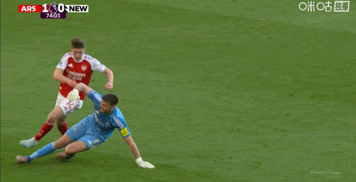 第74分钟,纽卡门将波普出击失误,解围失败滑倒后用手拦倒了前锋哲凯赖什,但当值主裁仅出示了黄牌。
